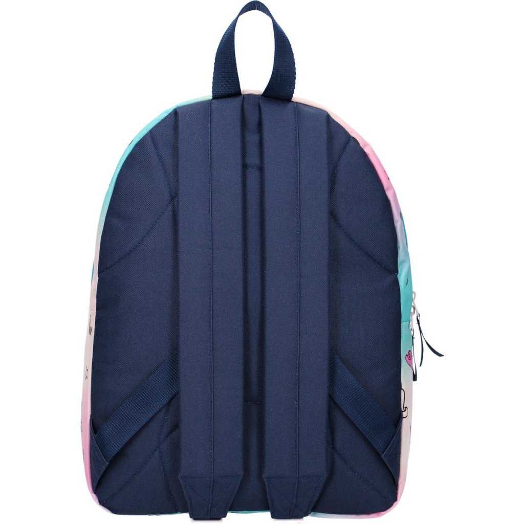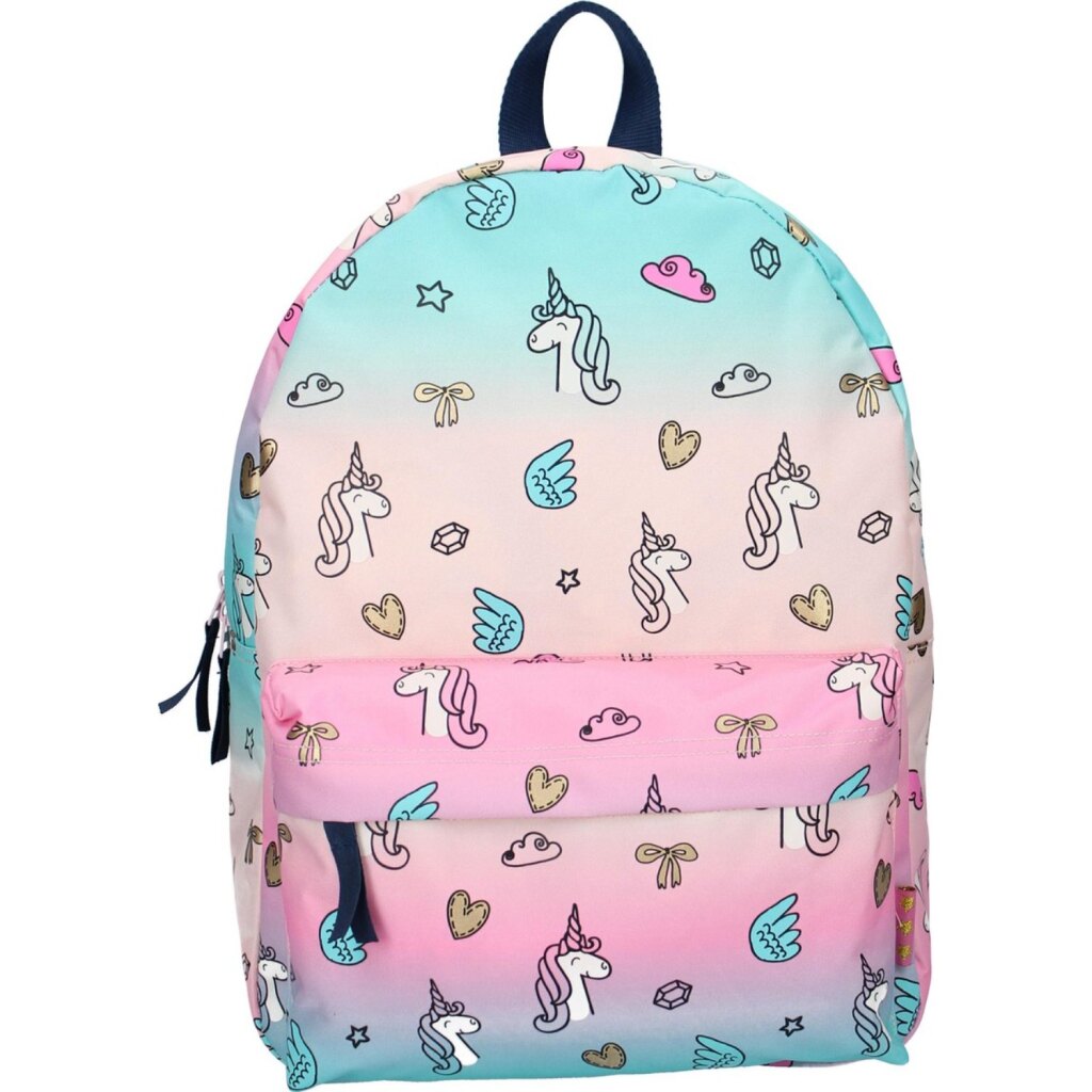 Milky Kiss roze-blauwe rugzak Spread Your Wings methoofdvak en two-way zipper, verstevigd rugpand en een met rits af te sluiten voorvakje. De gefoamde schouderbanden zijn in lengte verstelbaar en dragen hierdoor altijd comfortabel.
