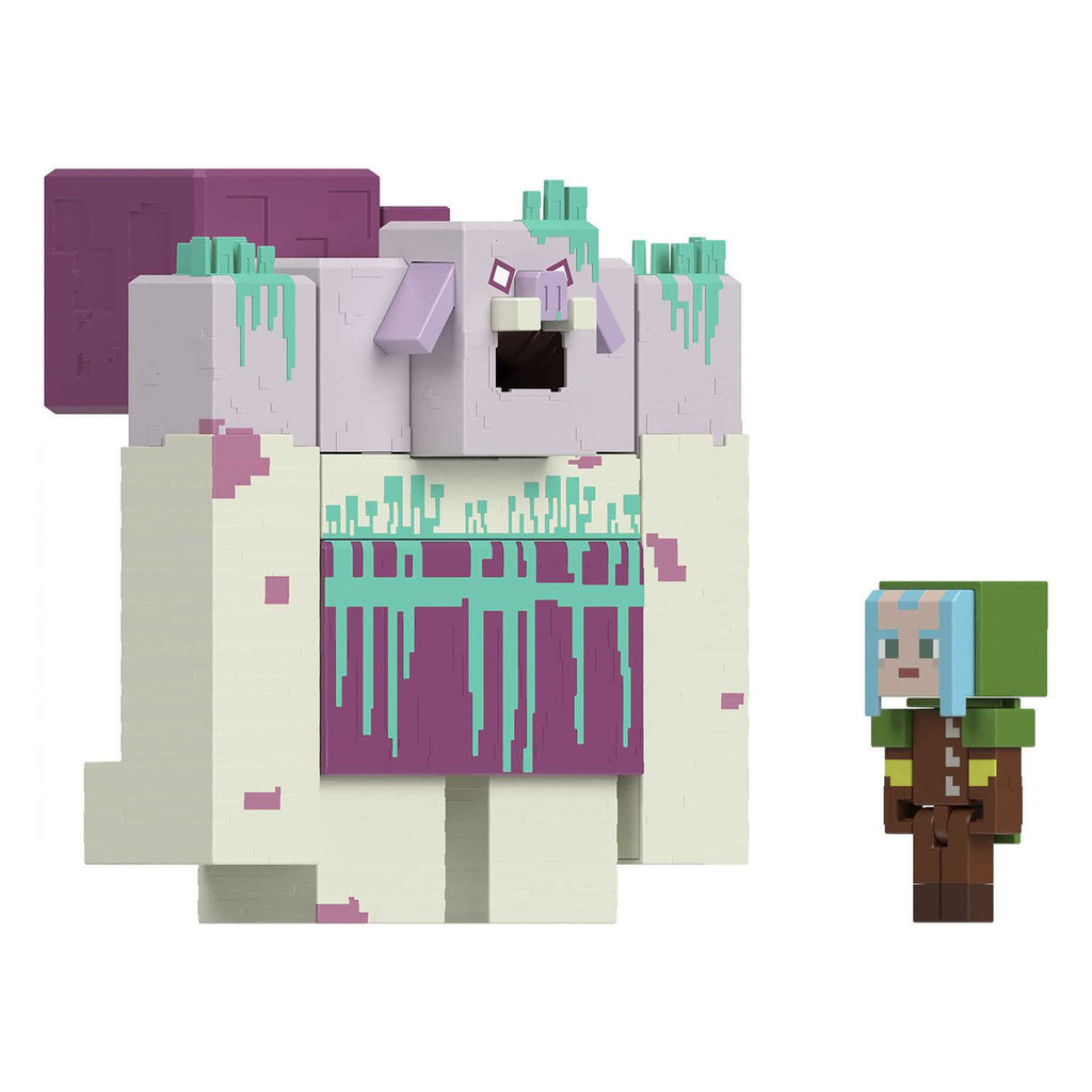 Duik in de spanning van Minecraft Legends en verslind de Bovenwereld met deze enorme actiefiguur van de Verslinder met braakaanval! Deze set bevat de angstaanjagende Verslinder die slijm spuugt en de heldhaftige Ranger (schaal 8 cm) die klaar is voor het gevecht en de verdediging! Bevestig de paddenstoelsporen aan de Verslinder, laad het slijm en spugen maar! Knijp daarna in de paddenstoelsporen en braak alles uit over de Ranger. Deze figuren lijken sprekend op de personages uit de Minecraft Legends videogame, maar fans zijn vooral gek op het grote formaat van deze superslechte boef! Kleuren en versieringen kunnen variëren.