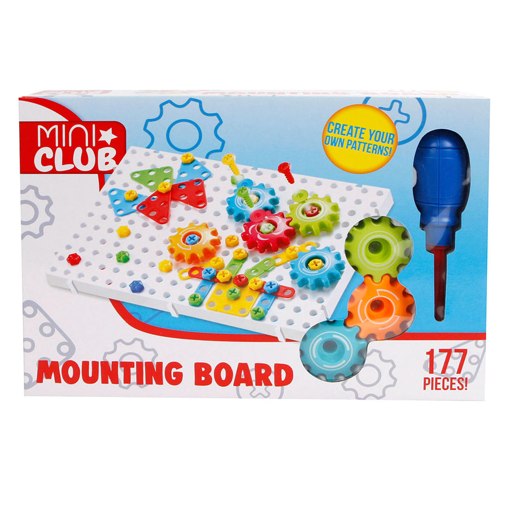 Mini Club Schroef en monteerbord met gereedschap en 117 kunststof onderdelen.