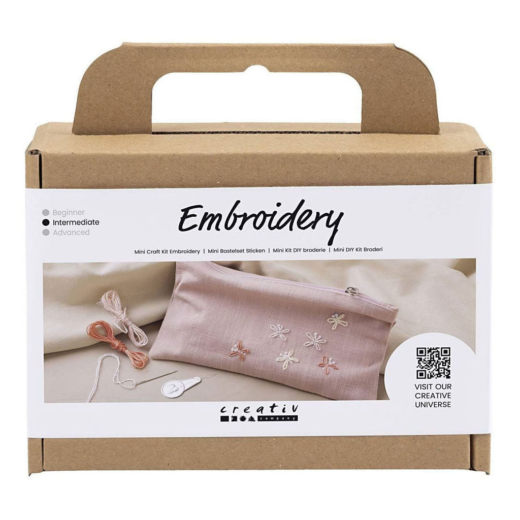 Inhoud: Clutch-tas, borduurgaren, naald, naalddoorsteker.