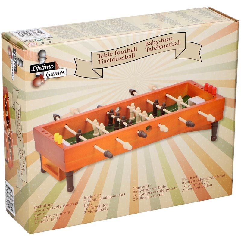 - Houten tafelvoetbalspel incl. 10 scopretellers en 2 metalen balletjes