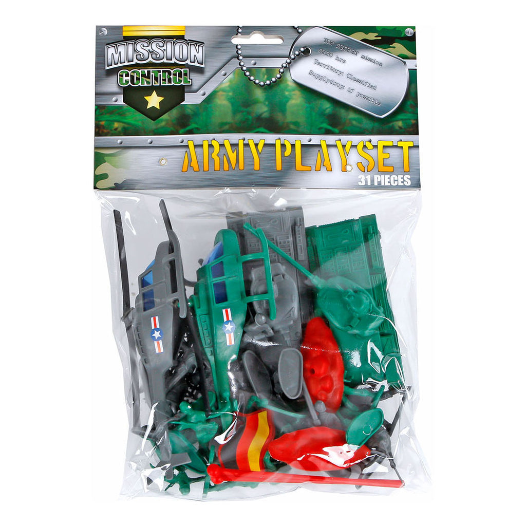 Mission Control Military Speelset met Soldaten en diverse voertuigen en vlaggen, 31dlg. Gemaakt van kunststof. Niet geschikt voor kinderen jonger dan 3 jaar.