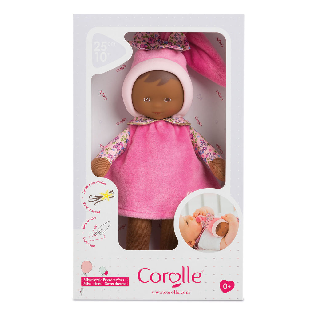 Een schattig popje voor de allerkleinsten. Het gezichtje van het Doudou Miss Floral popje is herkenbaar voor je baby, wat een geruststellende invloed heeft. De stoffen pop is gemakkelijk vast te pakken voor kleine handjes aan het mutsje of de armen of benen. De subtiele vanillegeur van de pop werkt tevens geruststellend en troostend. Heerlijk voor in bed. De Doudou is 25 centimeter groot en gemaakt van zacht katoen. Het popje is te wassen op een programma voor delicate was.