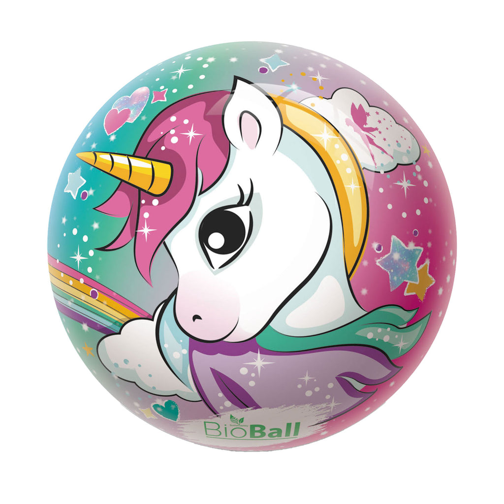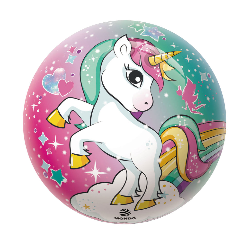 Bal met een eenhoorn erop afgebeeld. Diameter: 23 cm.