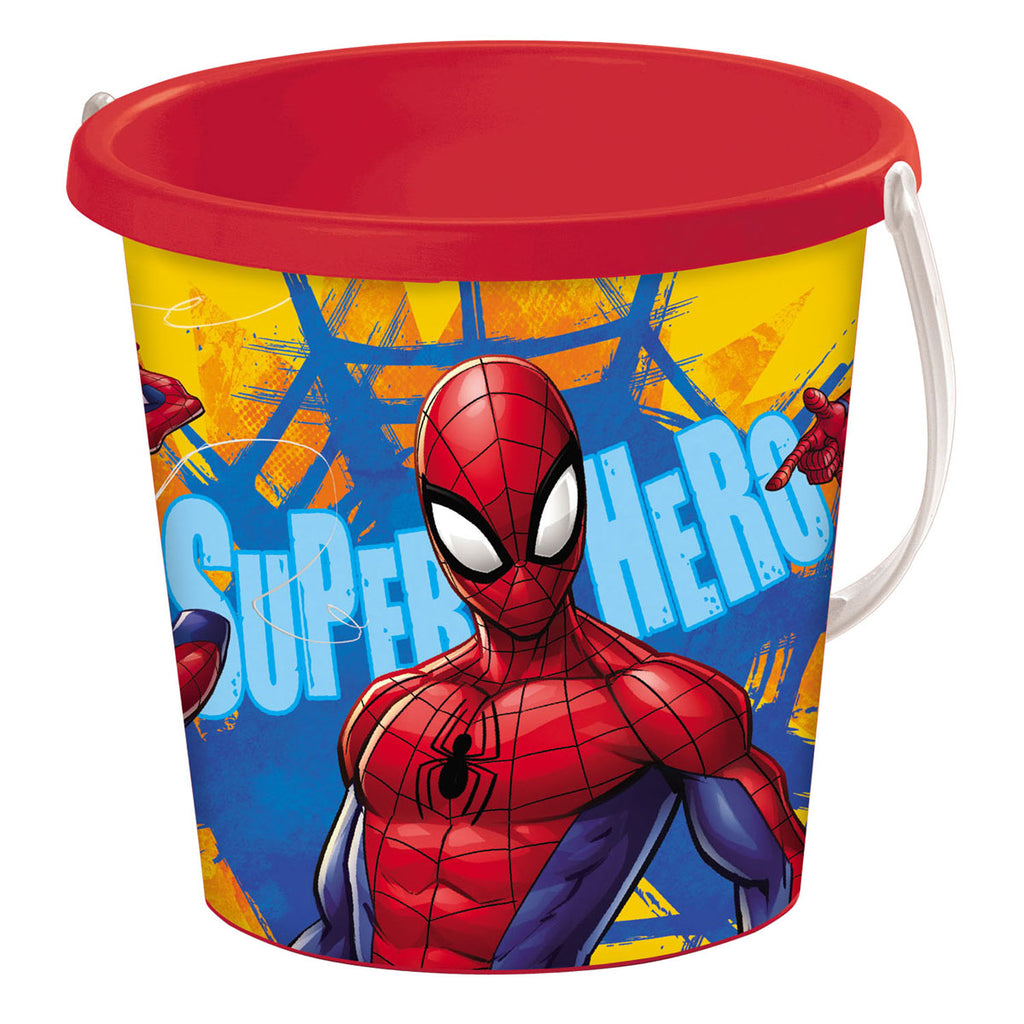 Kunststof emmer van Spider-Man met een hengsel en een diameter van 17 centimeter.