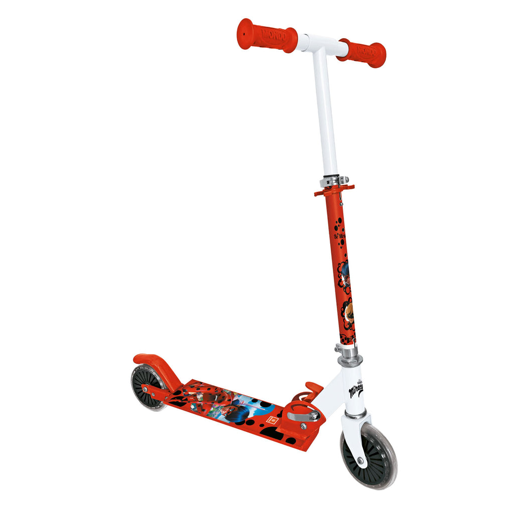 Mondo kinderstep in thema van de kinderserie Miraculous: Verhalen over Ladybug & Cat Noir. Verstelbaar stuur (tot 78 centimeter), 2 wielen en opvouwbaar. Geschikt vanaf 5 jaar. Maximaal draagvermogen: 50 kg.