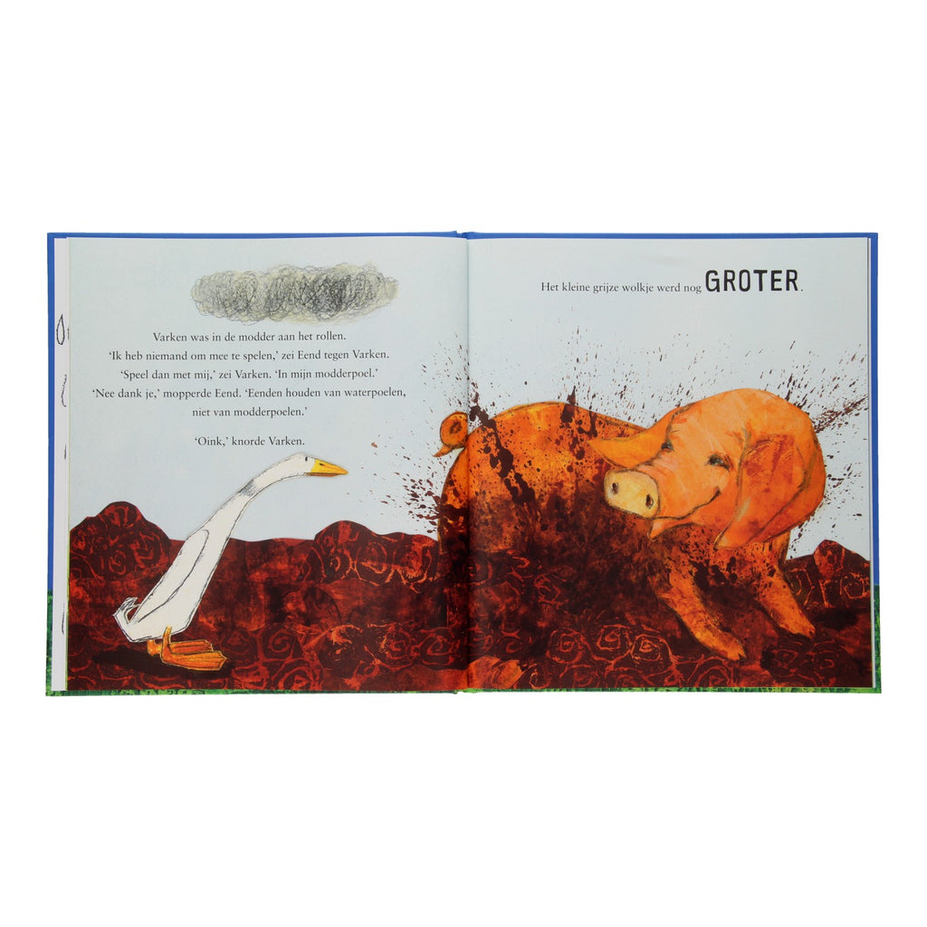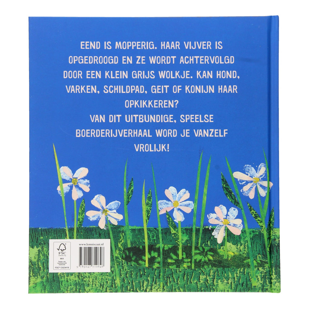 Het boek Moppereend van Joyce Dunbar, met tekeningen van Petr Horá?ek is een echte mopperboek waarbij je aan het einde van het verhaal toch gaat glimlachen. Eend is aan het mopperen, want het water in de vijver is opgedroogd en niemand wil met haar spelen. Ook wordt ze achtervolgd door een grijs wolkje dat boven haar hoofd steeds groter en donkerder wordt. Zal de wolk ooit gaan barsten en zal eend weer vrolijk worden?