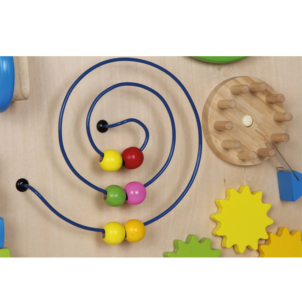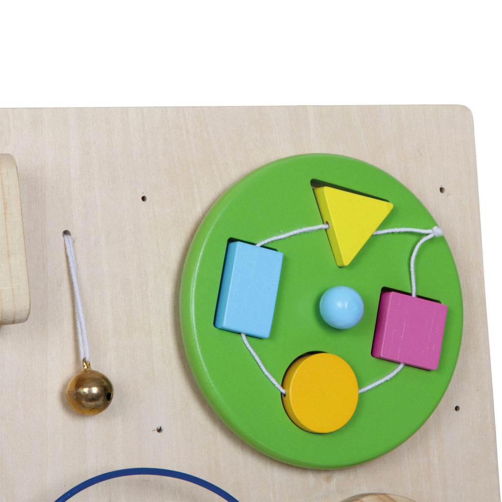 Op dit houten speelbord zijn veel functies bevestigd waarmee de fijne motoriek getraind kan worden. Draai aan de tandwielen, verschuif de kralen of maak muziek op de houten xylofoon. Draaibare steunen zorgen er voor dat het motoriekcentrum niet snel omvalt. Met behulp van de lussen van klittenband kan het centrum ook worden opgehangen.