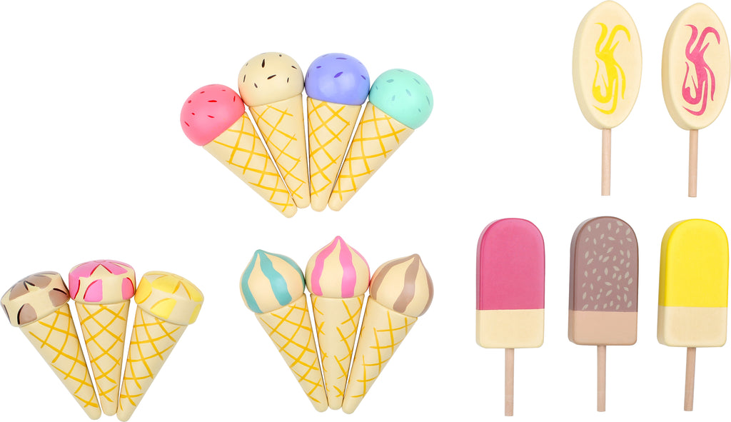 Deze ijskraam, ontworpen als een etagère, laat werkelijk geen wensen onvervuld. De houten ijshoorntjes kunnen in beweegbare openingen worden geplaatst en de ijslollies kunnen in voorgeboorde gaten in de bodem worden geplaatst. Een smakelijk, kleurrijk feestmaal.
