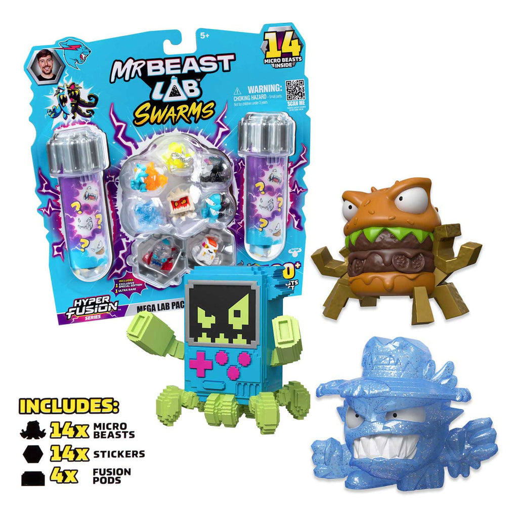 Meer beesten, meer chaos, meer plezier! Maak je klaar voor het ultieme MrBeast-experiment met de Mega Lab Pack uit de Hyper Fusion Series. In deze supergrote verpakking ontdek je 14 Swarms die ‘Hyper Gefuseerd' zijn tot bizarre combinaties van lava, ijs, metaal en zelfs snacks. Chaos gegarandeerd!