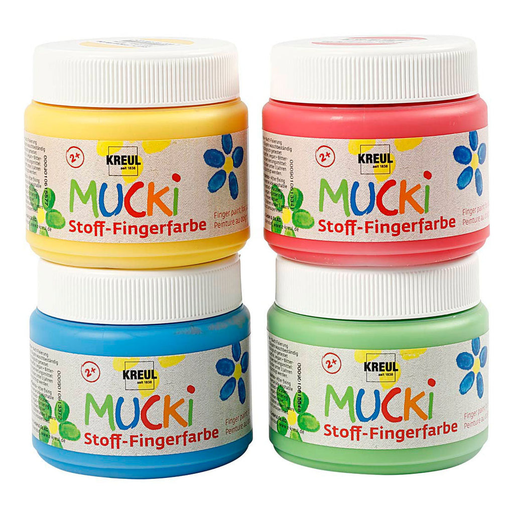 Set vingerverf op waterbasis geschikt voor textiel en geschikt voor kinderen Moet na decoratie 24 uur drogen en gestreken worden voor wasbare duurzaamheid. Daarna wasbaar op max. 40° C