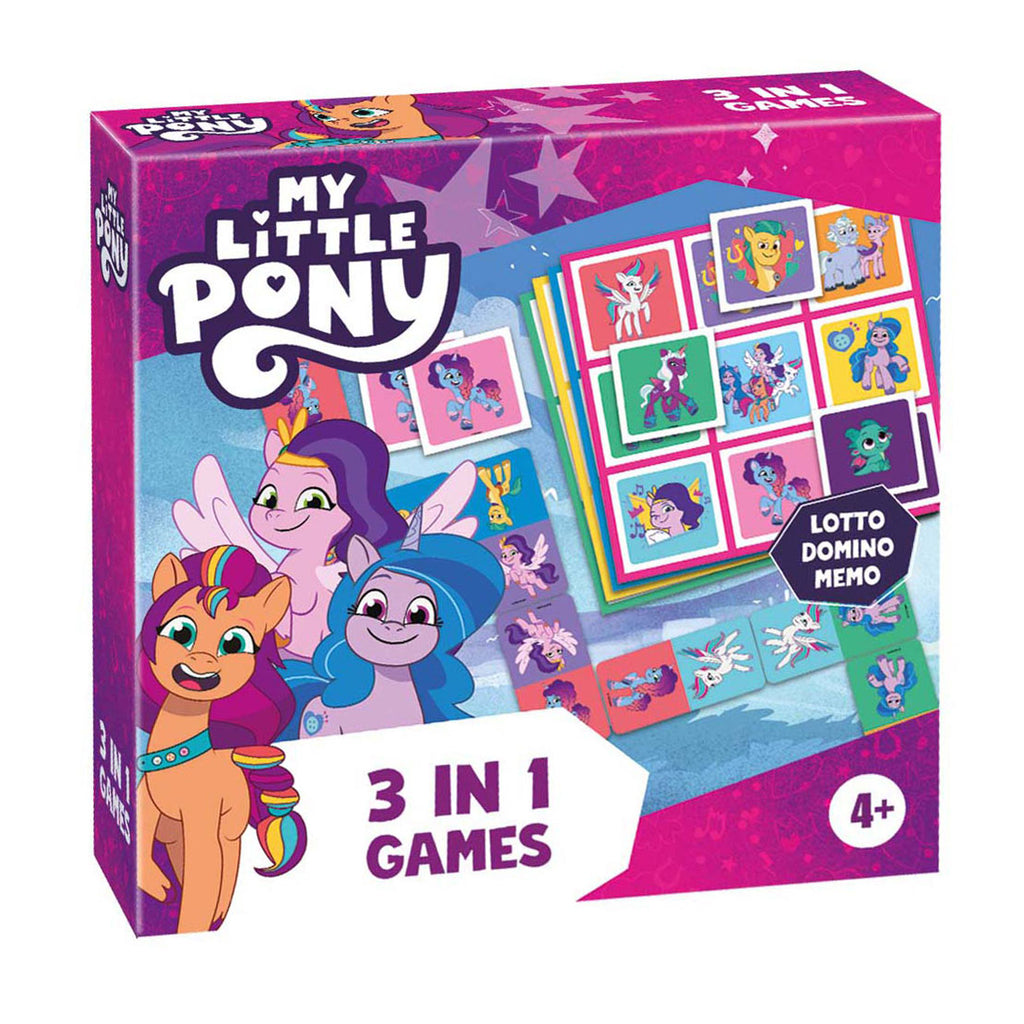 Drie vrolijke spellen in 1 doos! In deze doos vindt je 3 klassieke spellen: Lotto, domino en Memo. Verzamel kaarten op je afbeeldingkaart (lotto), maak een ketting van kaartjes (domino) en verzamel paren (memo).Uren speelplezier voor kinderen!