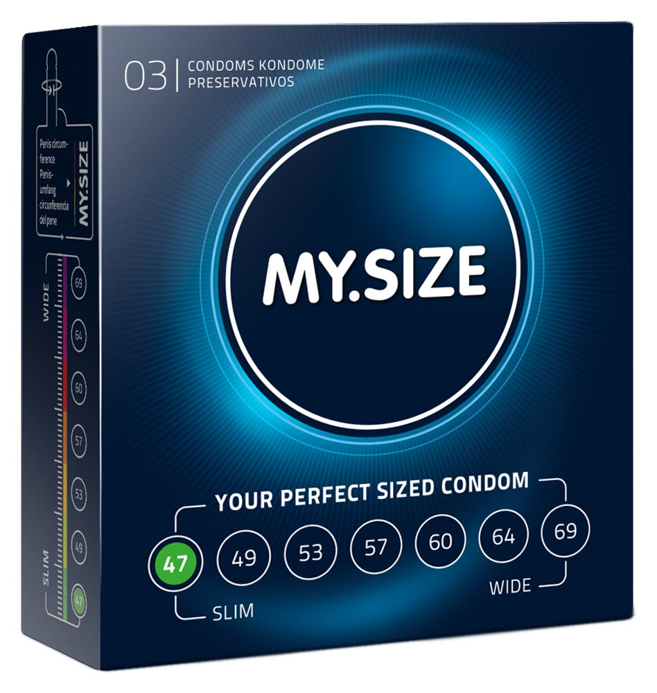 Deze condooms met een breedtemaat van 47 mm zijn strakkere condooms met de volgende afmetingen: