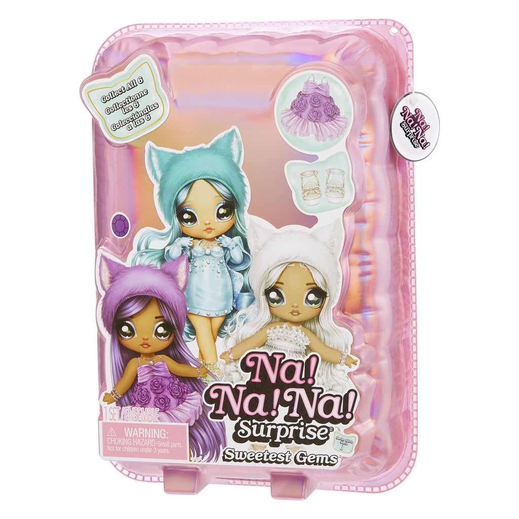 Laat zien dat je van iemand houdt met deze gloednieuwe serie Na Na Na Surprise Sweetest Gems™-modepoppen. De op geboortestenen geïnspireerde Sweetest Gems™ zijn kostbaar en heel glamoureus, en het perfecte cadeau voor grote en kleine vieringen. Je krijgt een hele zachte modepop in modieuze kleren, plus een bijpassende borstel! Elke pop heeft een schitterend gewaad, schoenen en een op een pluizige kat geïnspireerde beanie. De beanie is niet verwijderbaar. Na Na Na Surprise-poppen zijn de allereerste zachte, poseerbare modepoppen met geprint gezichtje en geprinte modedetails! Nu in een ondoorzichtige verpakking: onthul welk personage jij krijgt als je uitpakt! Valentina Lovely is inclusief een label met haar naam, verjaardagsdatum en een verhaaltje over haar erop. De Sweetest Gems™-serie omvat 6 schattige, zachte modepoppen in favoriete kinderkleuren om te verzamelen.
