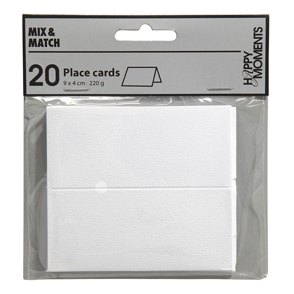 Klassieke plaatskaarten van karton voor allerhande feestelijkheden die je vrij naar je eigen stijl kunt versieren. Voor elk goed doordacht tafelplan heb je decoratieve naamkaarten nodig. Bij feestelijke gelegenheden spelen naamkaarten een speciale rol  ze helpen de gasten hun zitplaats te vinden. Maak je zelfgemaakte naamkaartjes extra bijzonder en versier de witte kaart met elk soort creatief hobbymateriaal dat je maar kunt bedenken. Klassieke naamkaarten worden ook wel glaskaarten genoemd. De reden hiervoor is dat ze bij een feestje oorspronkelijk op de glazen werden gelegd. Maar vandaag de dag kan je de kleine kaartjes van papier, karton of kaart overal neerleggen zolang ze maar centraal deel uitmaken van de tafelaankleding. Ze zijn vooral populair voor vormsels, verjaardagen, doopfeesten en bruiloften. Veel mensen kiezen ervoor om ze zelf te maken omdat ze zoveel decoratiemogelijkheden hebben. Je kunt ze wit en neutraal houden of experimenteren met kleuren en glitters. Zelfgemaakte naamkaarten kan je precies zo maken als je zelf wilt, of je moderne of juist elegante naamkaarten op je tafel wilt zetten.