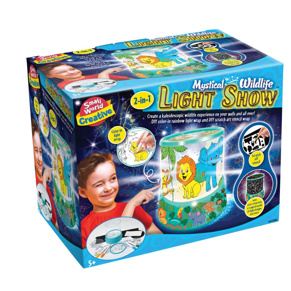 Nachtlamp Decoreren Wildlife is een leuke knutselset waarmee kinderen zelf een nachtlamp kunnen versieren. De jungledieren kunnen worden ingekleurd met de meegeleverde stiften. De lamp geeft een caleidoscoopeffect op de muur. Geschikt voor kinderen vanaf 4 jaar.