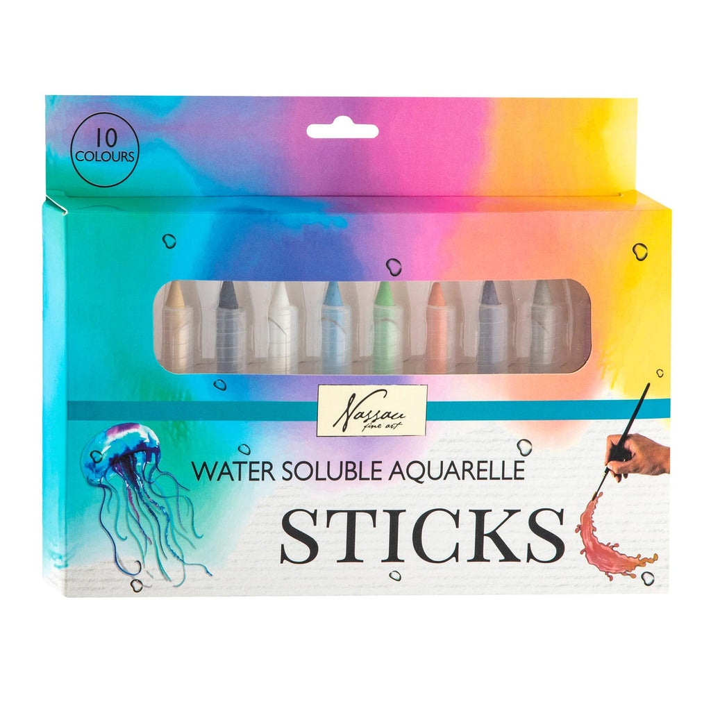 10 stuks aquarelkrijt van Nassau. Geschikt vanaf 6 jaar.