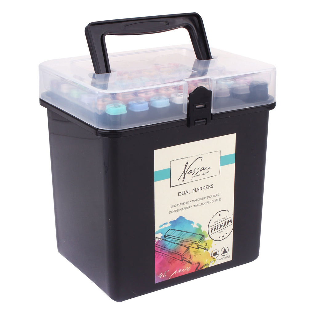 Nassau Dual Tip Markers in Opbergbox, 48 stuks.