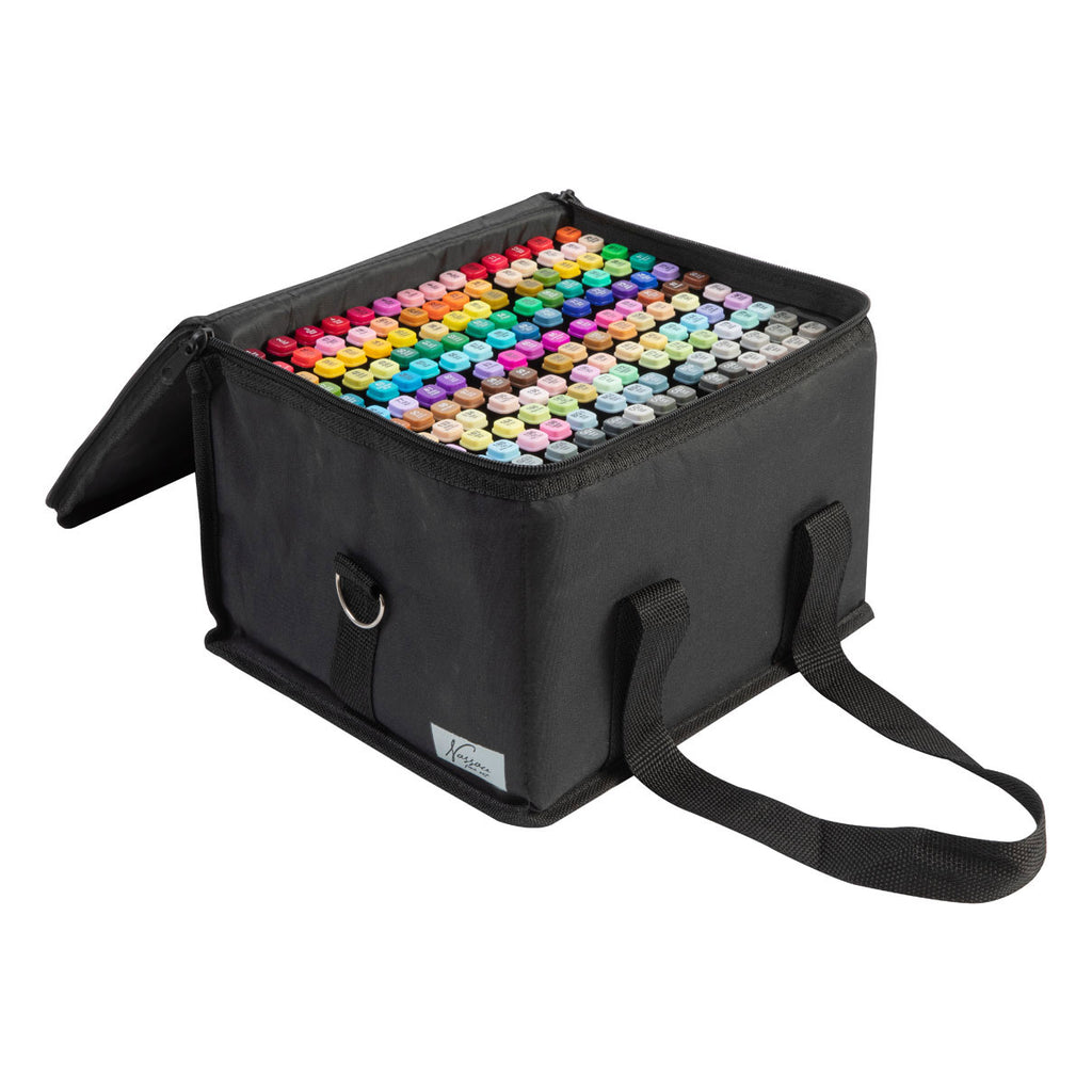 Deze Opbergtas met 168 kleurrijke dual-tip markers van Nassau Fine Art zijn een must have voor elke creatieveling. Met dit uitgebreide kleurenpallet maak je de mooiste kaarten, illustraties en handlettering. De stiften zijn gemaakt op basis van alcohol wat als voordeel heeft dat je mooie kleurovergangen, licht en schaduw effecten kunt maken. Ook kun je meerdere keren over eenzelfde stukje heen kleuren zonder dat papier gaat rullen. Je kunt de stiften aan beide kanten gebruiken waarbij een zijde een ronde en smalle tip heeft en de andere zijde een brede en platte tip. De markers worden geleverd in een stevig etui waarin je ze makkelijk kunt opbergen en meenemen.