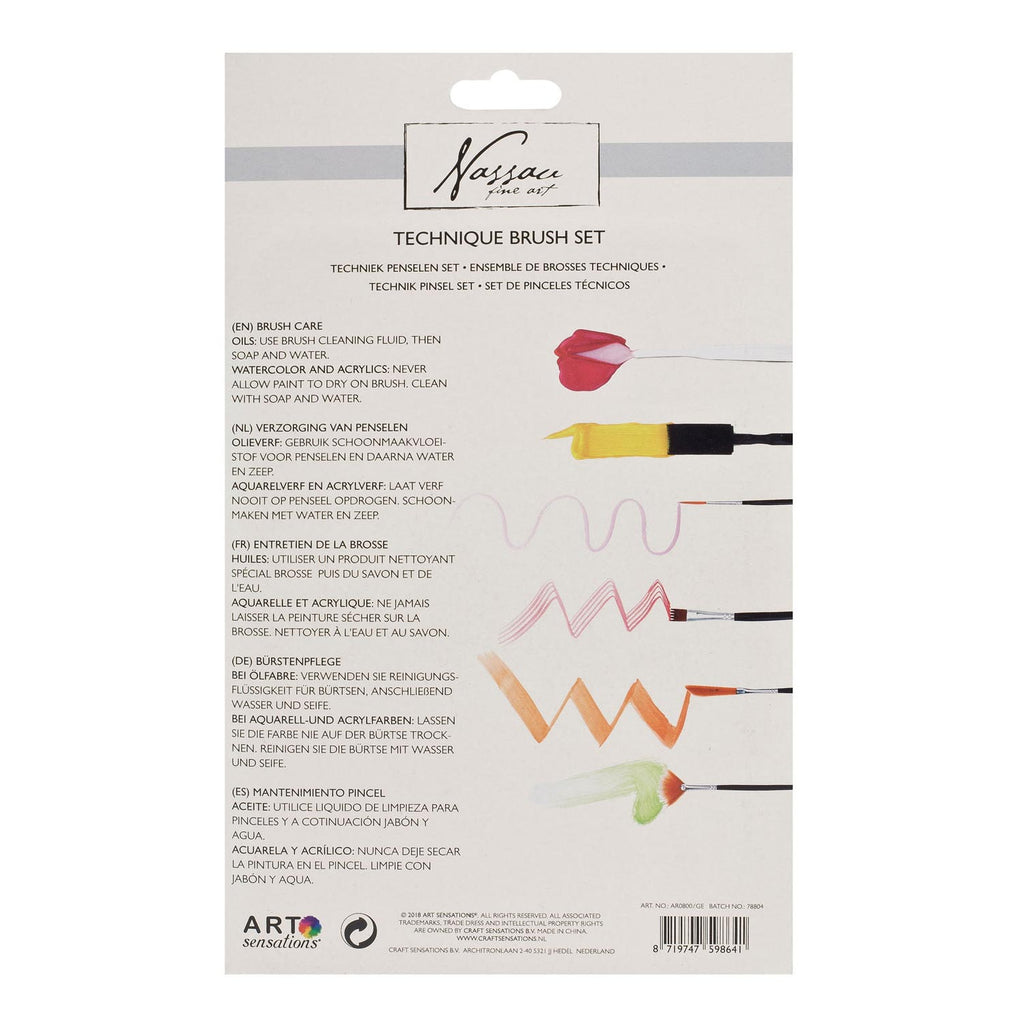 Nassau Techniek Brush Penselen Set, 7-delig met 5 penselen, een sponspenseel en een spateltje.