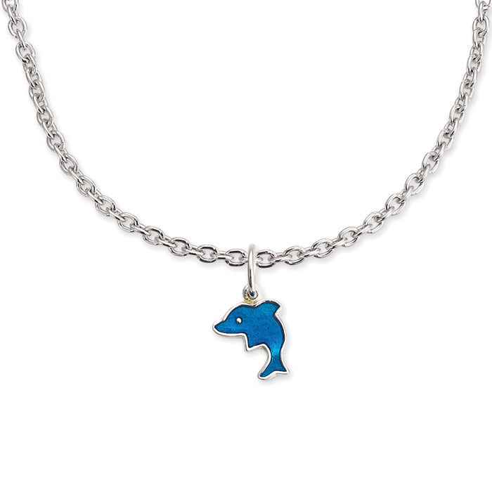 Fijne ketting inclusief dolfijnhanger met blauw glinsterend inzetstuk (breedte: ca. 1 cm). Een geweldig eerste sieraad voor kinderen!