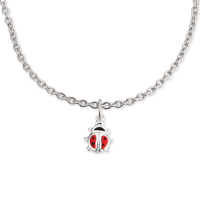 Fijn halssieraad met 4-stippen lieveheersbeestje hanger met rode en zwarte kleurstelling (breedte: ca. 1 cm). Een geweldig eerste sieraad voor kinderen!