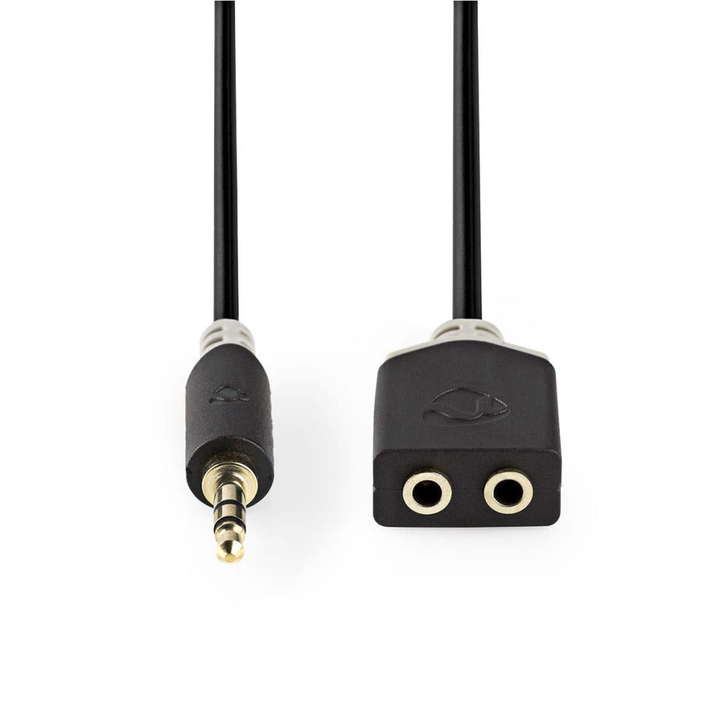 Kabel om twee hoofdtelefoons te verbinden met hetzelfde draagbare audioapparaat om samen muziek te luisteren.