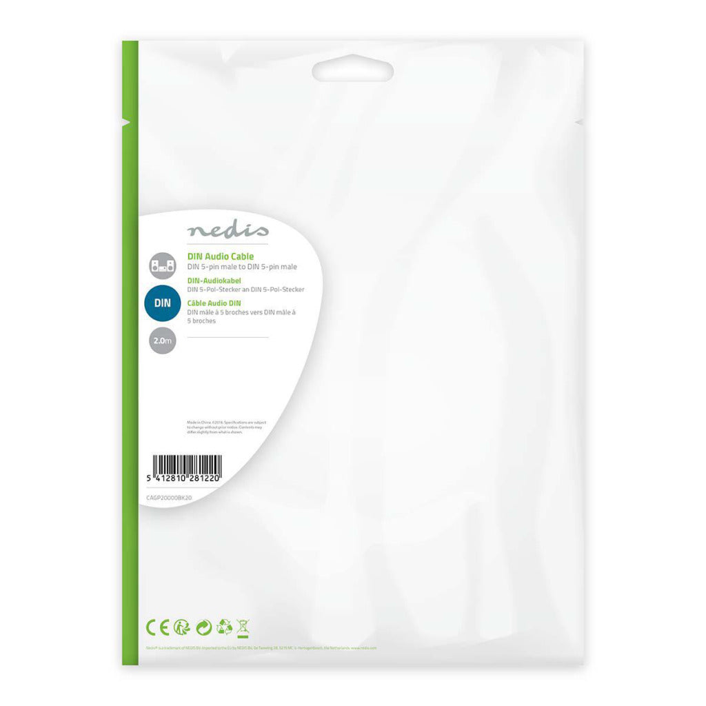 Deze stereo audiokabel met 5-pin DIN-connectoren is geschikt voor het verbinden van audioapparatuur zoals een casetterecorder of CD-speler met een versterker.
