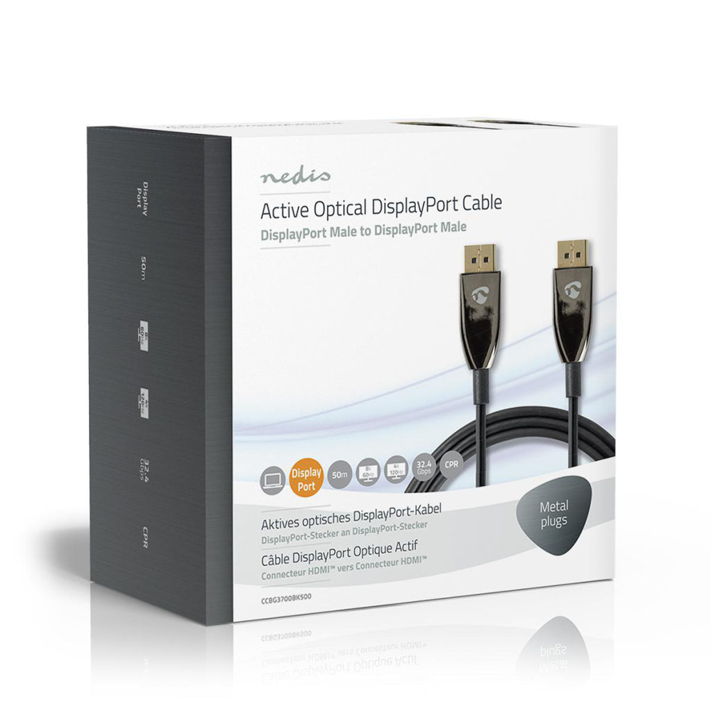 Deze actieve optische kabel (AOC) is de perfecte oplossing om grote hoeveelheden en hoogwaardige gegevens over te dragen over lange lengten en vrijwel zonder verlies. Dankzij de volledig metalen behuizing is de kabel zeer goed bestand tegen elektromagnetische interferentie (EMI) en radiofrequentie-interferentie (RFI). Samen met de CPR-certificering is dit de ideale kabel om in gebouwen en kantoren te gebruiken als een vaste constructie tussen de bron en het scherm.