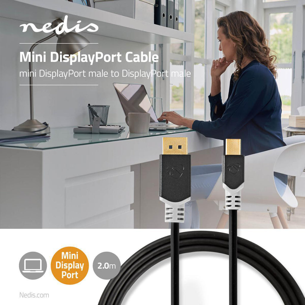 Sluit je MacBook, iMac, Intel en PowerBook12” DisplayPort-modellen aan met deze Nedis® mini-DisplayPort-naar-DisplayPort-kabel.