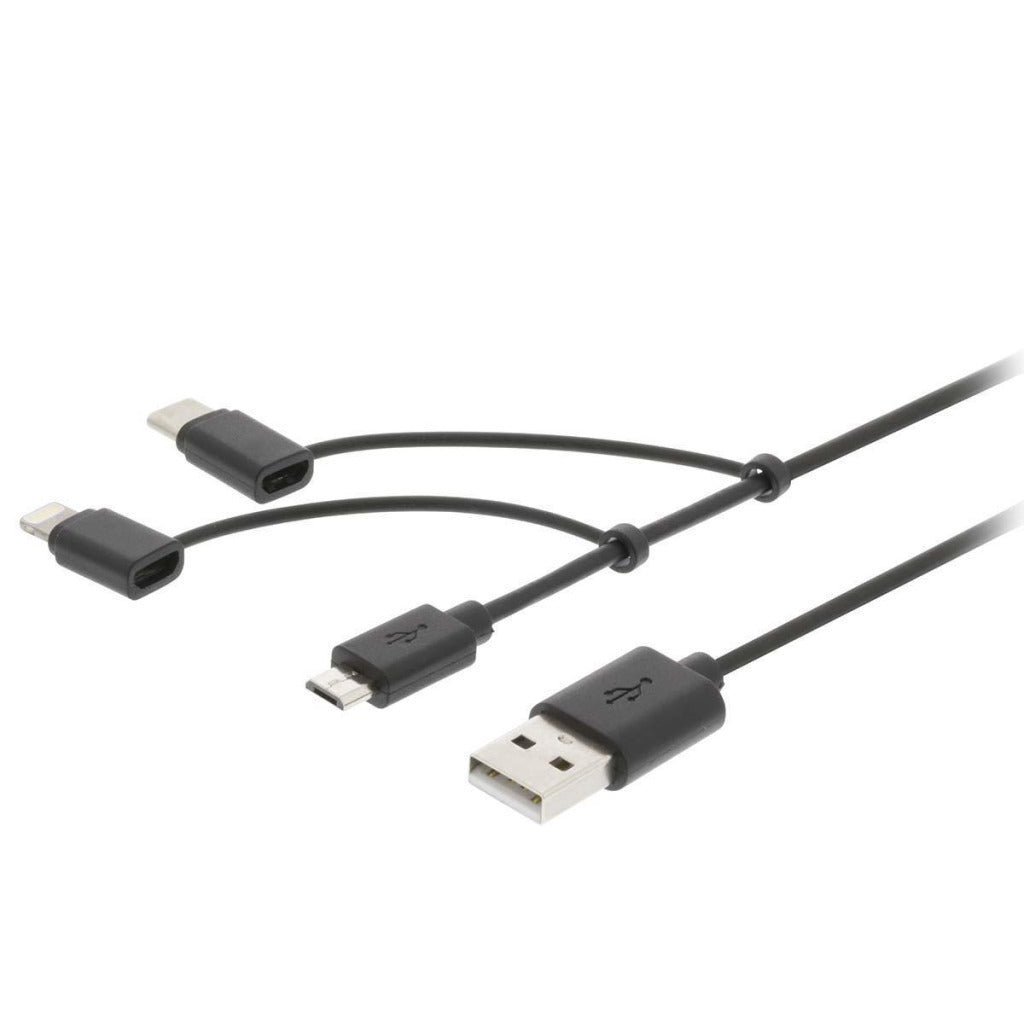 Deze Nedis® oplaadkabel heeft een USB-Micro-B-connector om je smartphone of tablet te synchroniseren en op te laden. Er zitten tevens een Lightning-adapter en een USB Type-C-adapter aan bevestigd. Hiermee kun je een groot scala aan mobiele apparaten opladen en synchroniseren, inclusief modellen van de allernieuwste generatie.