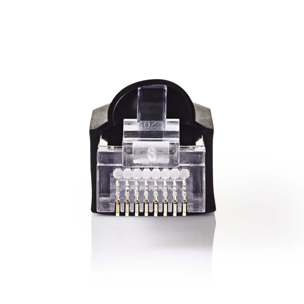 Monteer deze afgeschermde netwerkconnector op een netwerkkabel en maak zo uw eigen op maat gemaakte netwerkkabel. De trekontlasting beschermt de kabel tegen breuken die kunnen ontstaan door buigen.