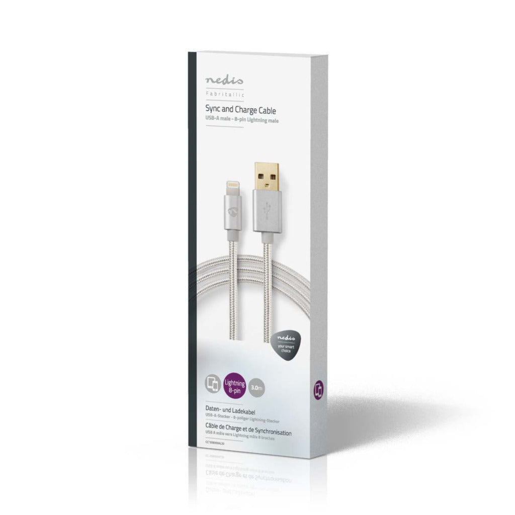 Met deze premium Nedis® vergulde synchronisatie- en oplaadkabel - USB-A Male naar lightning 8-pins - kunt u uw Apple iPhone, iPad of iPod met een lightning-connector synchroniseren en opladen.