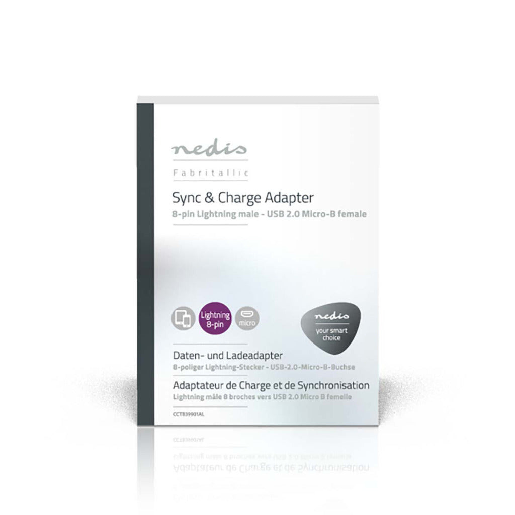 Met deze Nedis®-synchronisatie- en oplaadadapter - 8-pins lightning Male naar USB 2.0 Micro-B Female - kunt u een Apple iPhone, iPad of iPod aansluiten op een pc om synchroniseren en opladen te activeren.