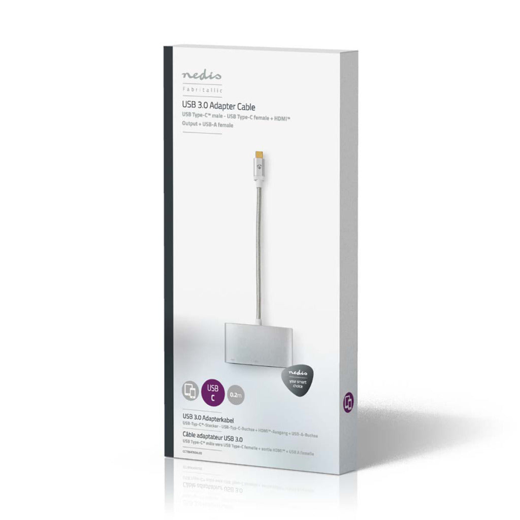 Deze premium Nedis® drie-in-één vergulde USB 3.0-adapterkabel biedt een USB TYPE-C™ Male-aansluiting op: