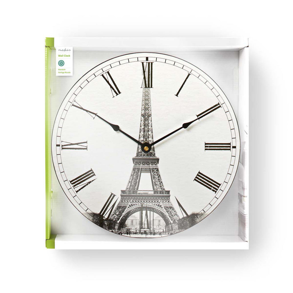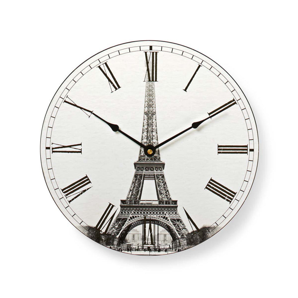 Francofielen zullen weg zijn van deze très chic ronde wandklok met een sfeervolle afbeelding van de Eiffeltoren. Met een diameter van 30 cm is de klok eenvoudig op te hangen, gebruikt 1x AA-batterij (niet bijgeleverd) en is uitgerust met een quartz uurwerk voor precisie en nauwkeurigheid.