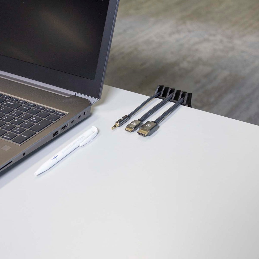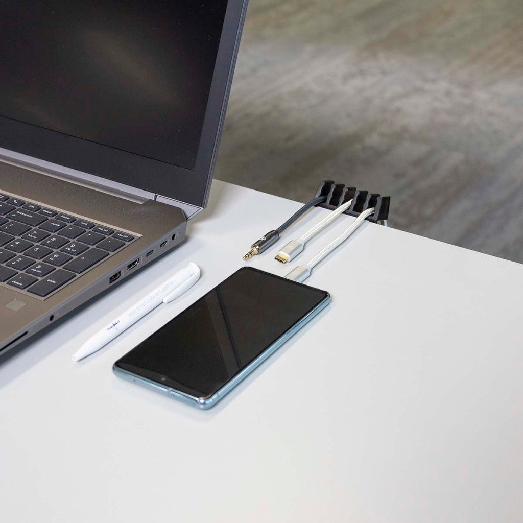 Ontwerp voor meerdere toepassingen: vijf openingen in verschillende maten om te voldoen aan de dagelijkse eisen voor vaste verbindingen thuis en op kantoor. Kunnen worden gebruikt voor het organiseren van desktopkabels, geschikt voor kabels van minder dan 7,1 mm, zoals audiokabels voor hoofdtelefoons, USB-laadkabels en computermuiskabels.