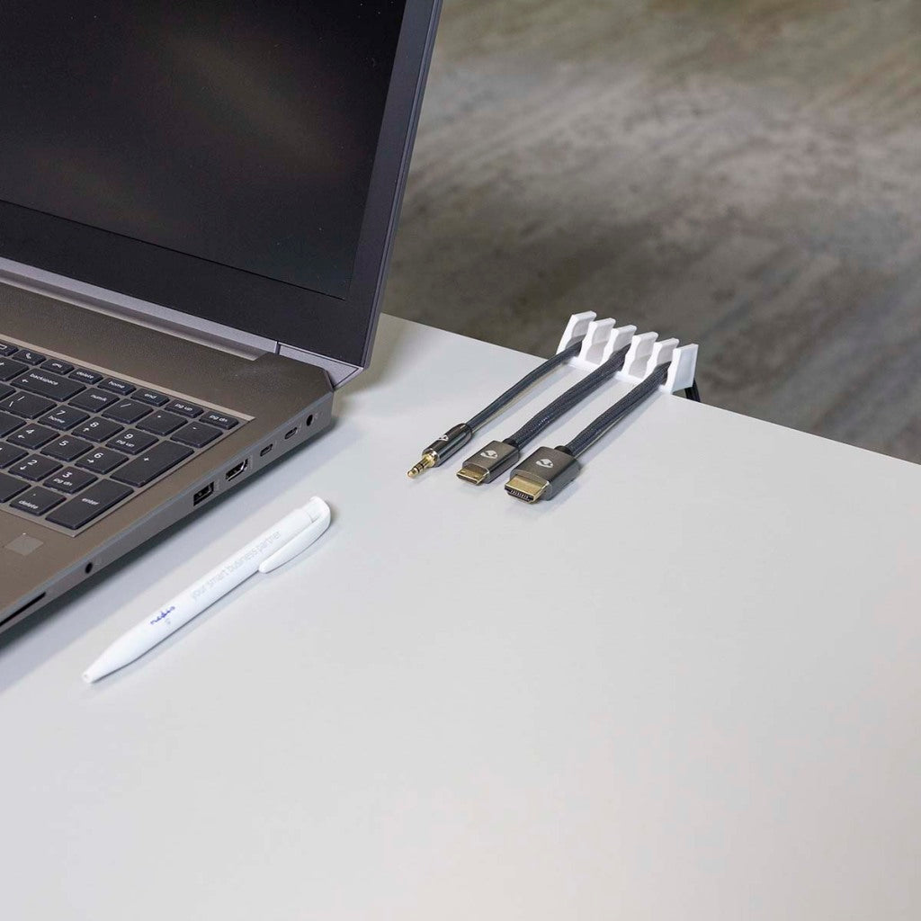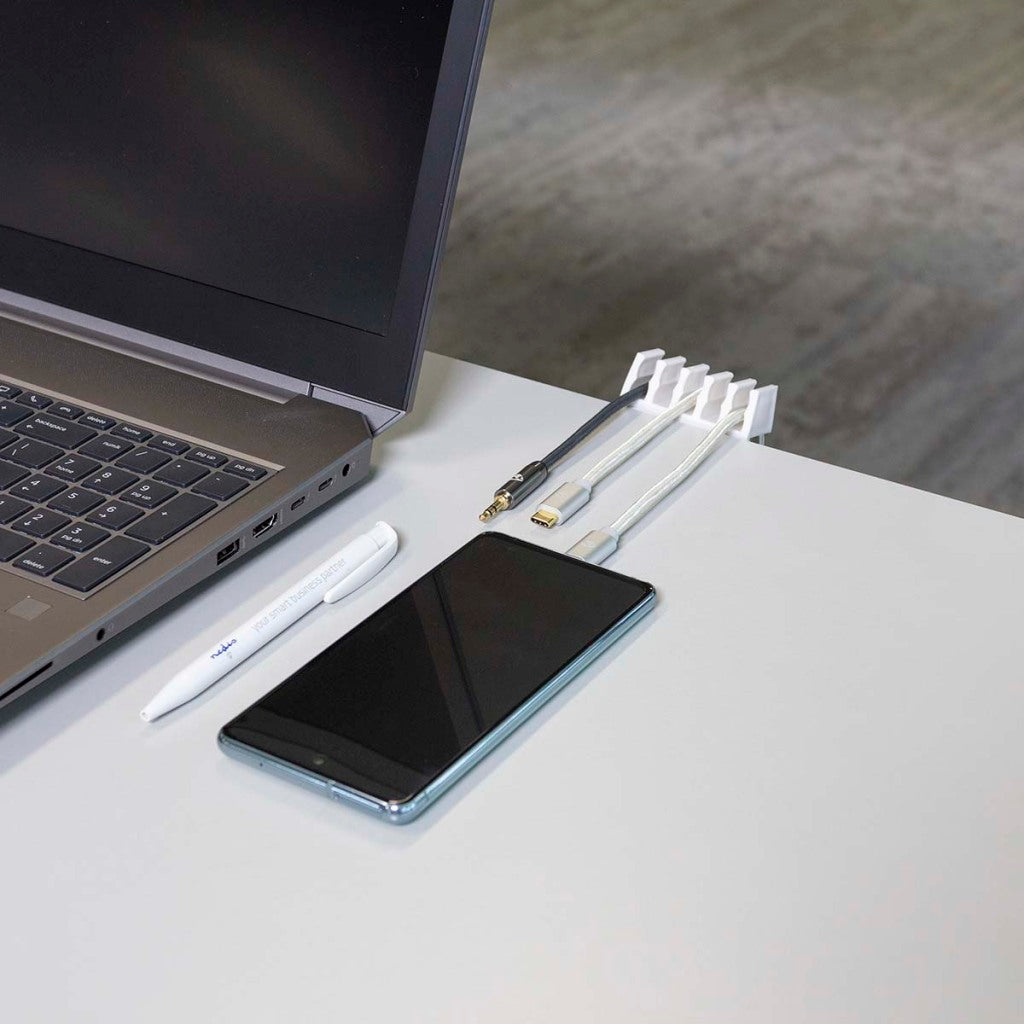 Ontwerp voor meerdere toepassingen: vijf openingen in verschillende maten om te voldoen aan de dagelijkse eisen voor vaste verbindingen thuis en op kantoor. Kunnen worden gebruikt voor het organiseren van desktopkabels, geschikt voor kabels van minder dan 7,1 mm, zoals audiokabels voor hoofdtelefoons, USB-laadkabels en computermuiskabels.