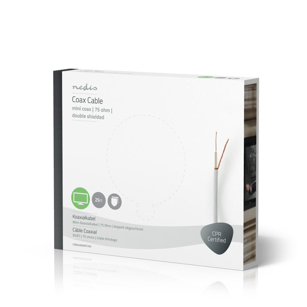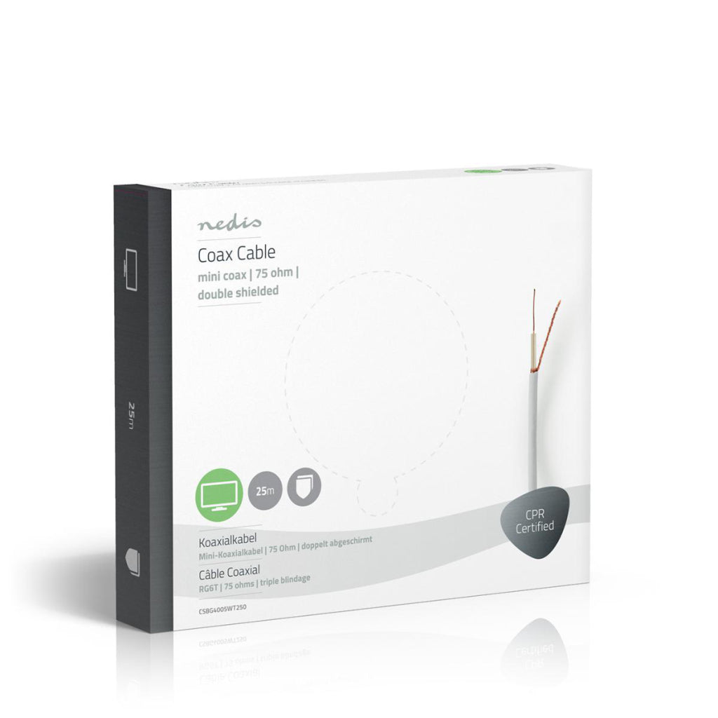 Hoogwaardige mini-coaxkabel op een rol van 25 meter, voor de overdracht van RGB-videosignalen.