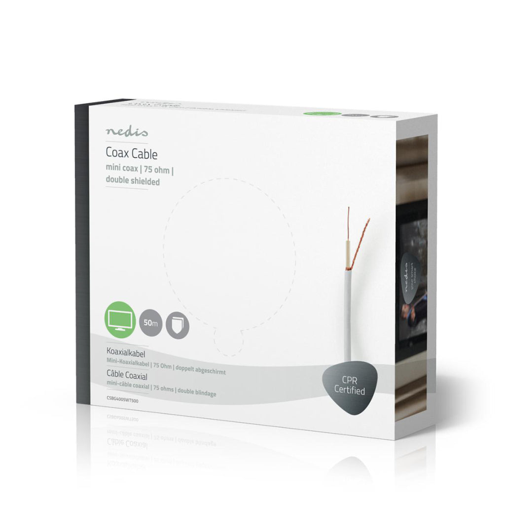 Hoogwaardige mini-coaxkabel op een rol van 50 meter, voor de overdracht van RGB-videosignalen.