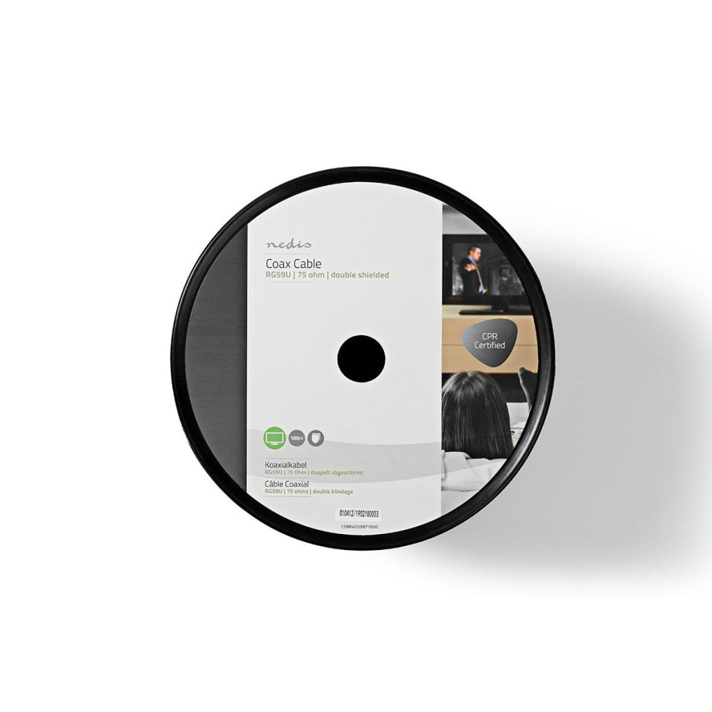 Standaard coaxkabel op een rol van 10 meter voor de overdracht van analoge televisiesignalen.