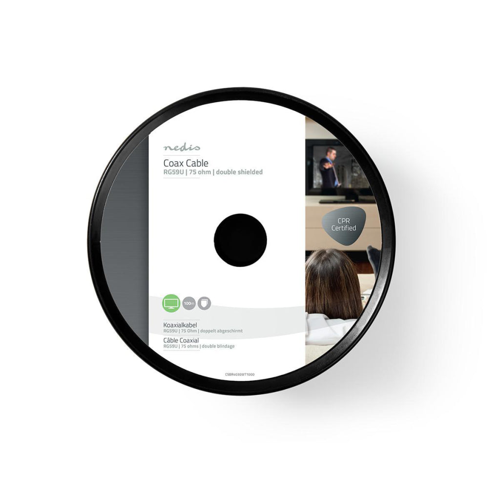 Standaard coaxkabel op een rol van 100 meter voor de overdracht van analoge televisiesignalen.