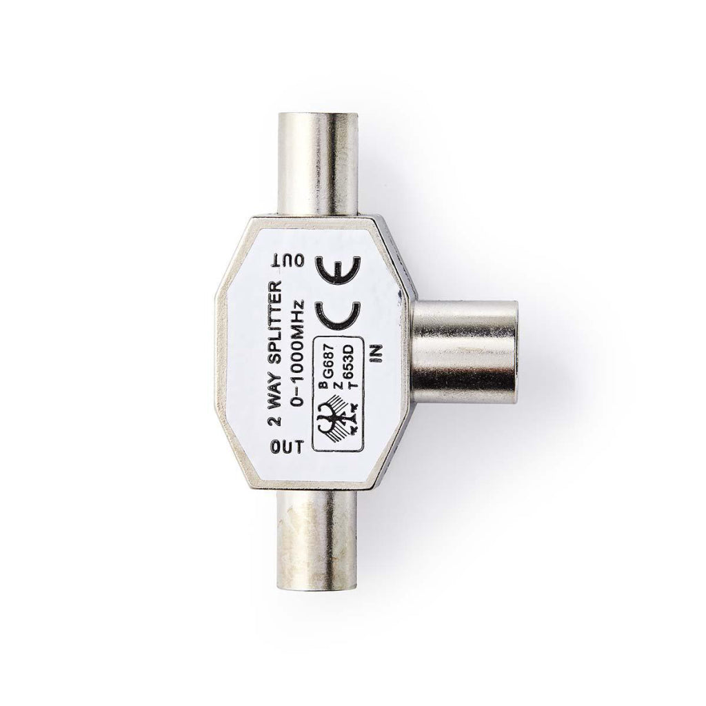 Deze T-splitter is geschikt om twee coaxiale kabels te verbinden met een enkele coax-connector.
