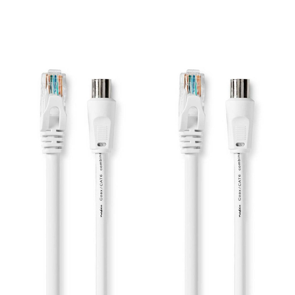 Deze Nedis coax-/CAT6-combinatiekabel verzendt zowel het internetsignaal als het TV-signaal. Hierdoor hoef je slechts één kabel op je TV, settopbox of satellietontvanger aan te sluiten in plaats van twee aparte kabels. De kabel wordt voor het gemak geleverd met vaste connectoren voor zowel IEC als Ethernet.