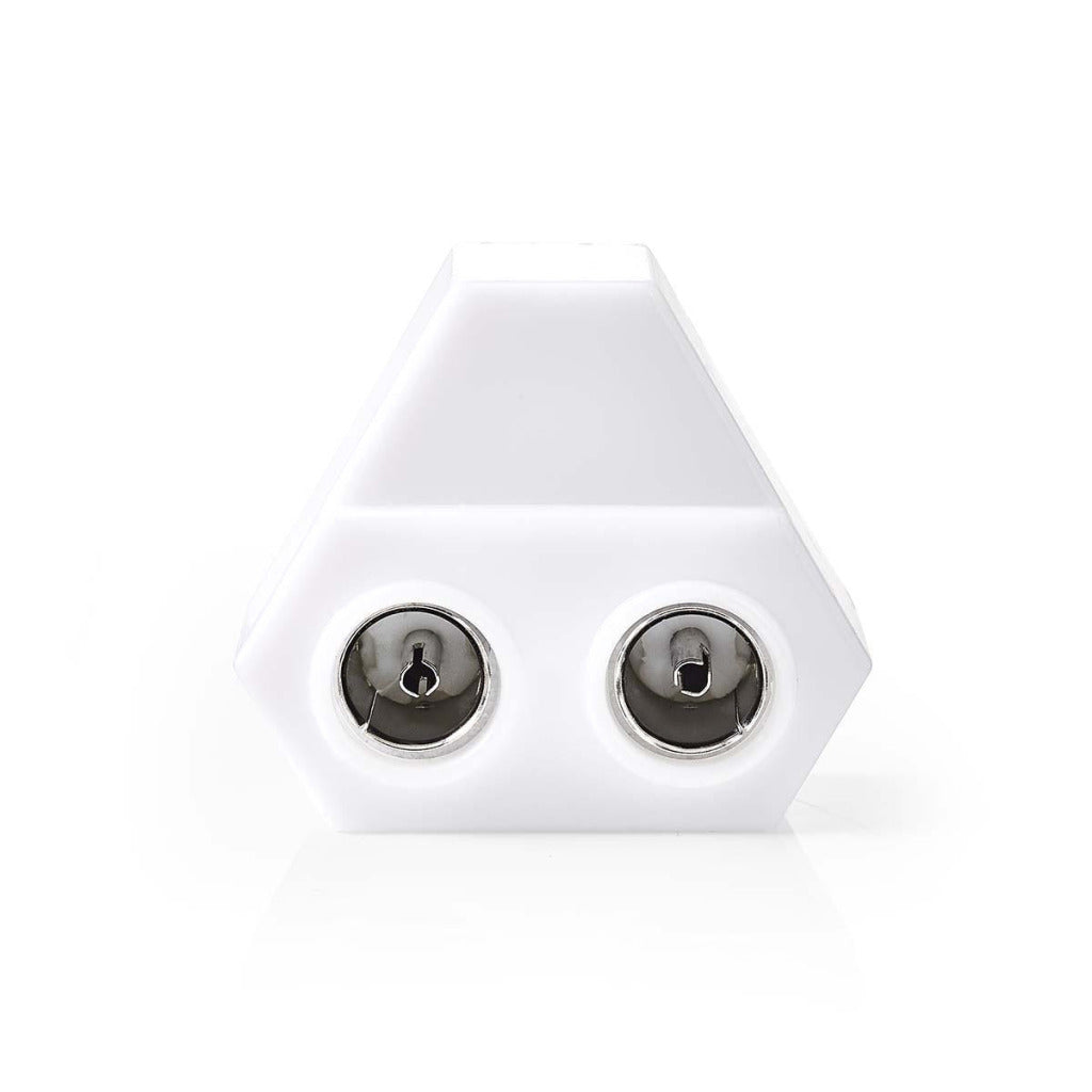 Deze T-splitter is geschikt om twee coaxiale kabels te verbinden met een enkele coax-connector.