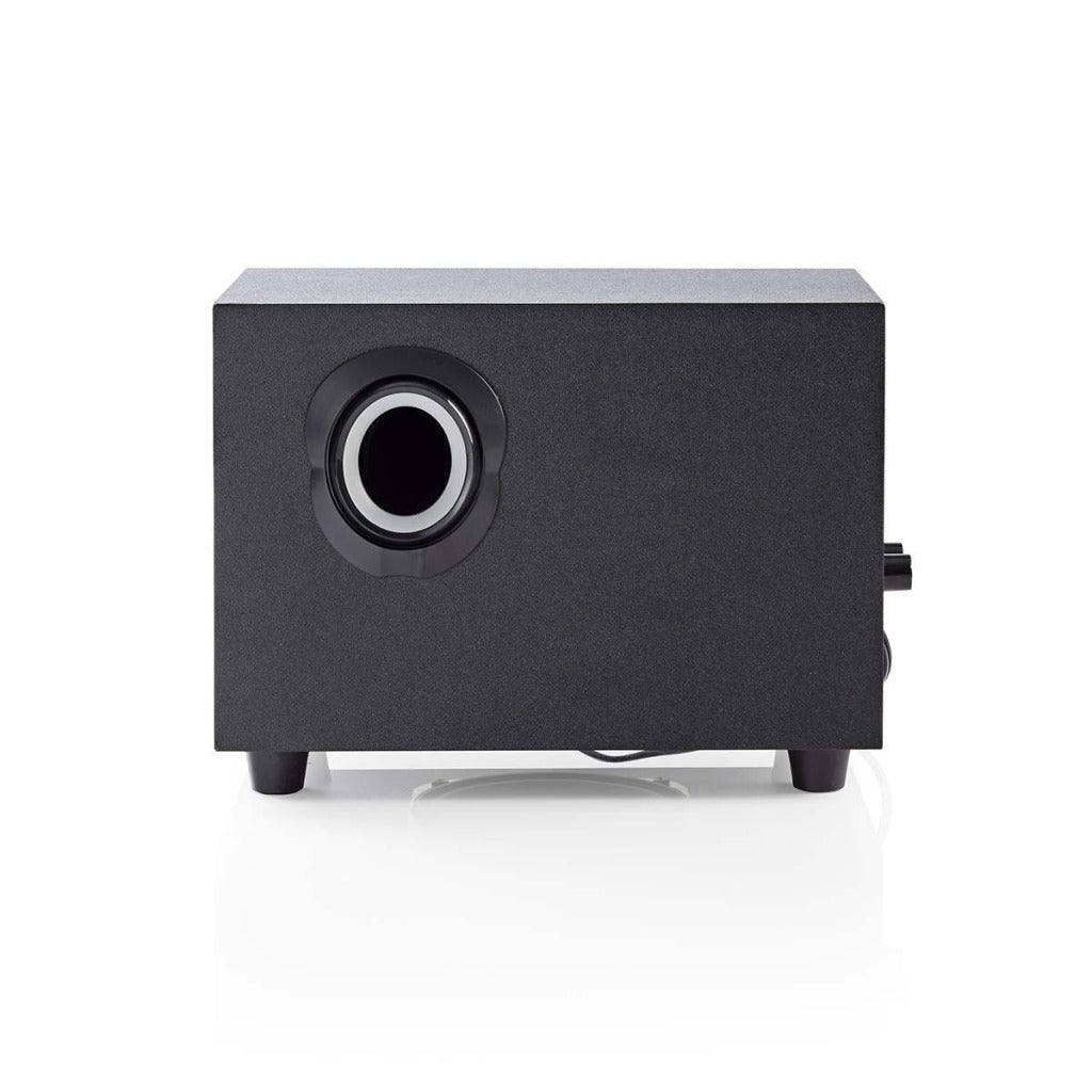 Transformeer het zwakke, blikkerige geluid van uw PC en smartphone in de structuurrijke diepten van 2.1-stereo met deze luidsprekerset van 33 watt van Nedis® met USB-voeding.
