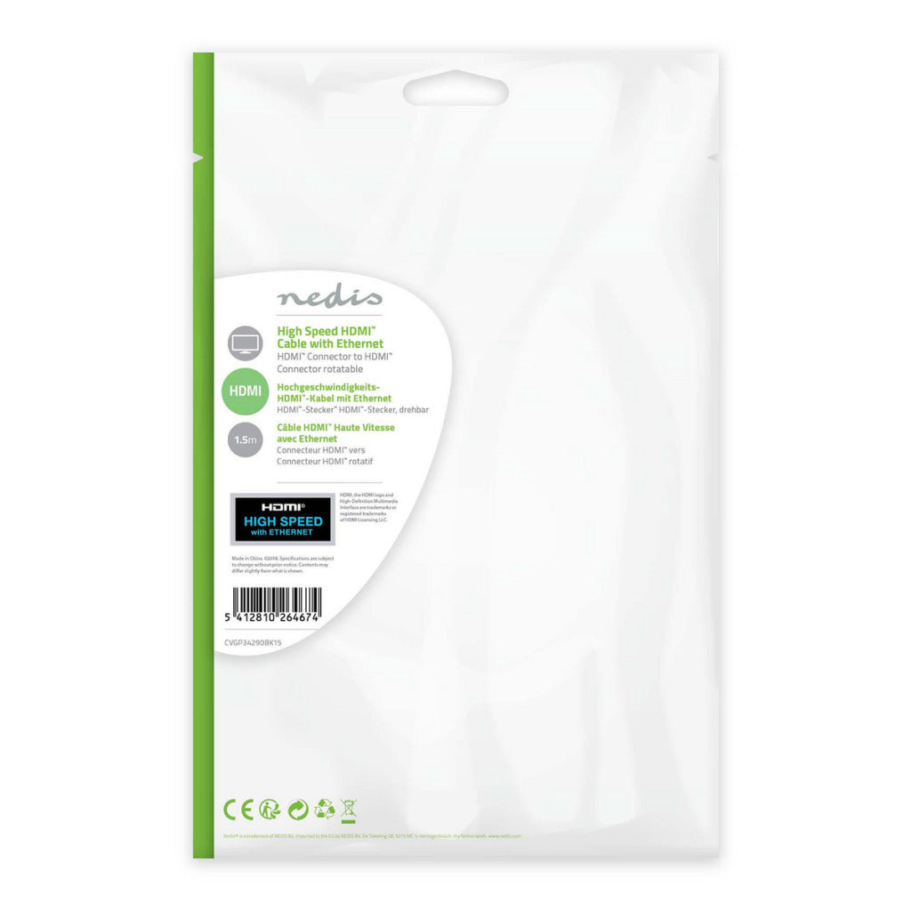 Deze High Speed HDMI-kabel met ethernet is geschikt voor het netwerken van apparaten en kan videoresoluties van 1080p en hoger aan, waaronder geavanceerde display technologieën zoals 4K, 3D en Deep Color. De hoek van de connector stelt u in staat om uw apparaten met elkaar te verbinden op plekken waar weinig ruimte is.