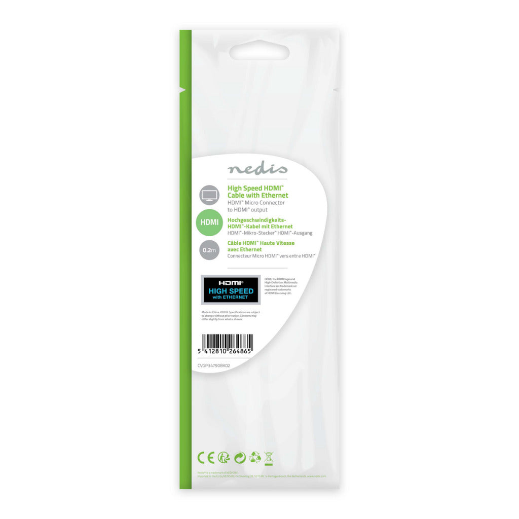 Deze High Speed HDMI-kabel met ethernet is geschikt voor het netwerken van apparaten en kan videoresoluties van 1080p en hoger aan, waaronder geavanceerde display technologieën zoals 4K, 3D en Deep Color. De micro-connector stelt u in staat om uw apparaten te verbinden met een home cinema-set, LCD- of plasma TV.