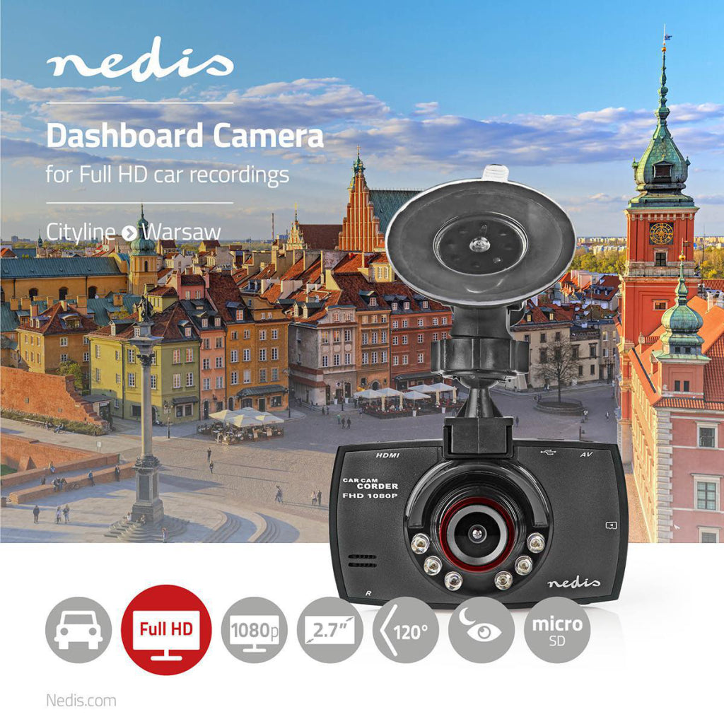 Deze Nedis® dashcam registreert je autoritten in Full HD 1080p-kwaliteit, zodat je ze later in heldere details kunt bekijken. De dashcam heeft een 2,7 inch LCD-scherm en een 120-graden lens. De camera werkt met een microSD-geheugenkaart van maximaal 32 GB en neemt in een lus op, wat betekent dat wanneer de geheugenkaart vol is, de eerder opgenomen bestanden worden overschreven. De opname wordt gestart en gestopt wanneer je de motor start en stopt, en de bewegingsdetectie zorgt ervoor dat de camera alleen opneemt wanneer er beweging in het gezichtsveld is.