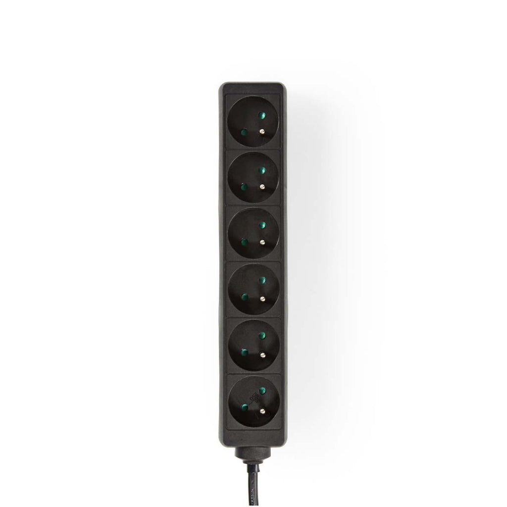 Stekkerdoos met kinderbeveiliging om een wandcontactdoos op te splitsen in zes stopcontacten. De stekkerdoos is uitgerust met een lange kabel om overal in huis of op kantoor elektrische apparaten van stroom te voorzien.